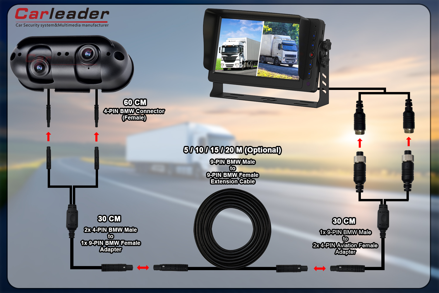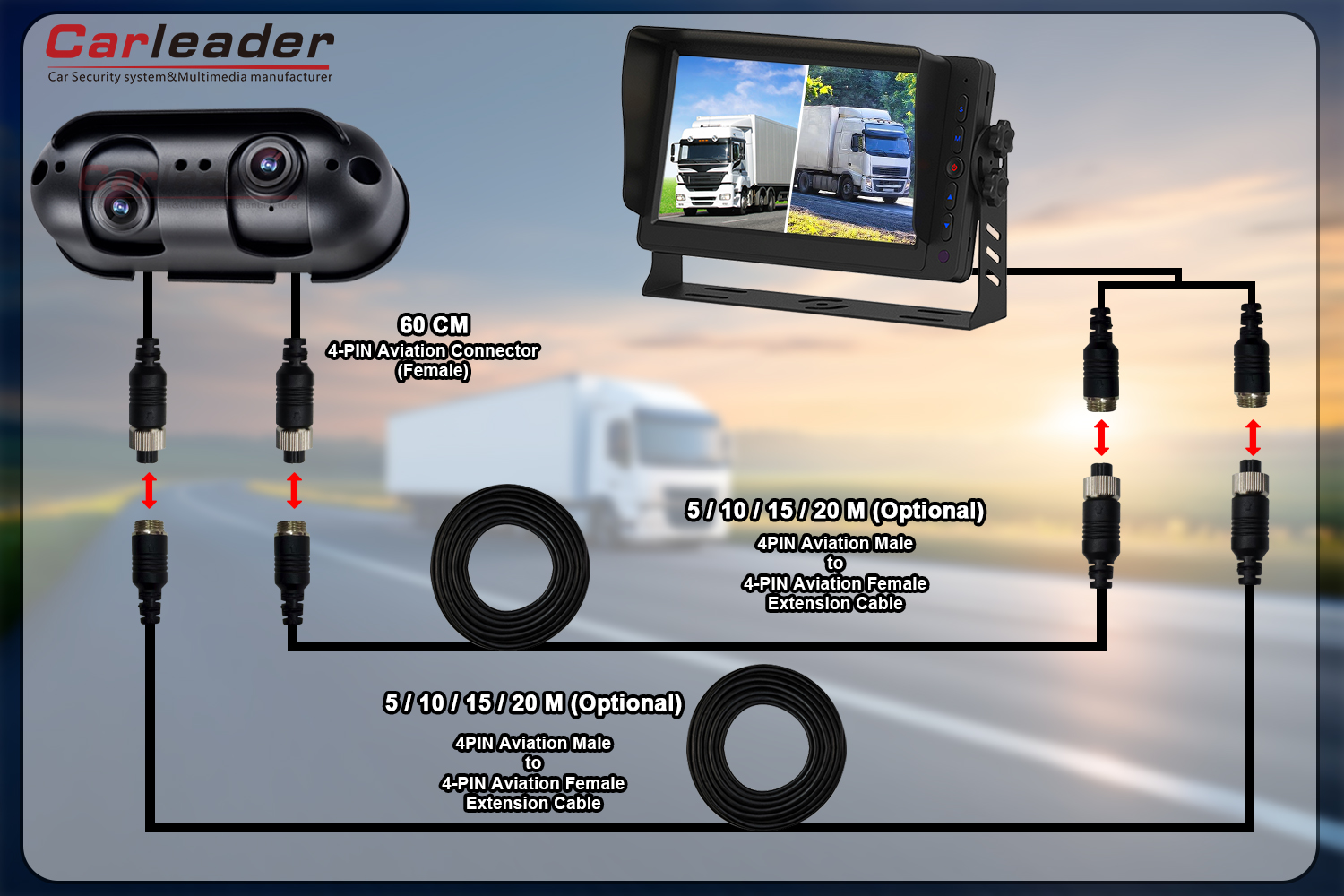 Mag-aalok ang Carleader ng dalawang magkaibang wiring solution para sa Starlight AHD Dual Lens Heavy Duty Reversing Camera, upang magkasya sa iba't ibang pangangailangan ng mga kable: