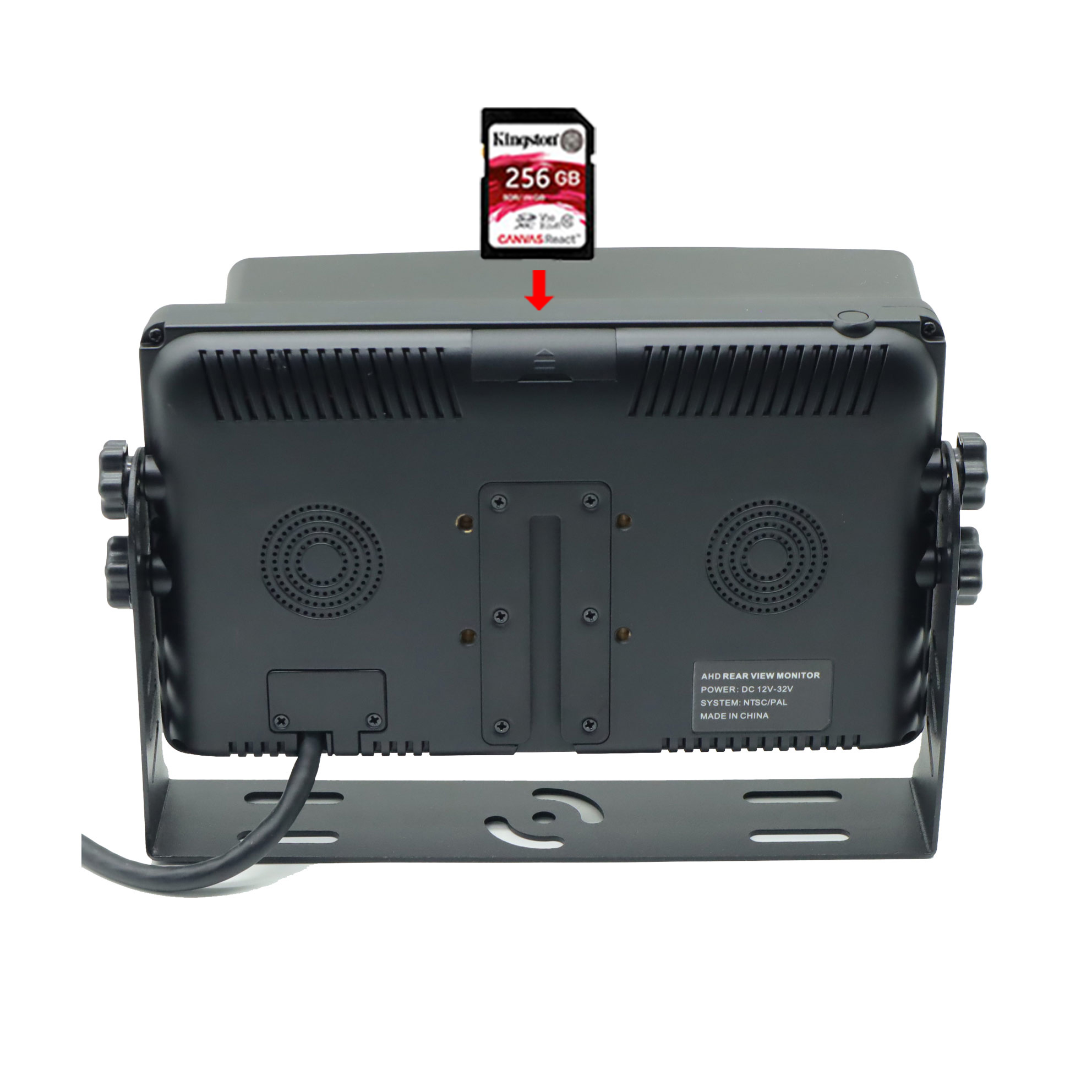 Ang Carleader 7 Inch 4CH AHD Inputs Quad View Display Monitor ay sumusuporta sa DVR recording function, na may SD card slot sa likod ng monitor, ang maximum capacity ay hanggang 256GB. Ang mga tampok na may function ng pag-record ng loop, ay maaaring awtomatikong i-record ang video ng camera at pag-playback.