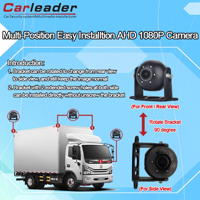 CarleaderAHD Heavy Duty Vehicle Front / Side / Rear View Camera na may bracket install hole sa itaas, pababa, kanan, kaliwa, na nagbibigay-daan sa camera na ayusin ang bracket ng camera upang magkasya sa iba't ibang posisyon ng camera, gaya ng front, side at rear view, gawing mas compatible ang camera na ito para sa sistema ng pagsubaybay sa kaligtasan ng sasakyan.