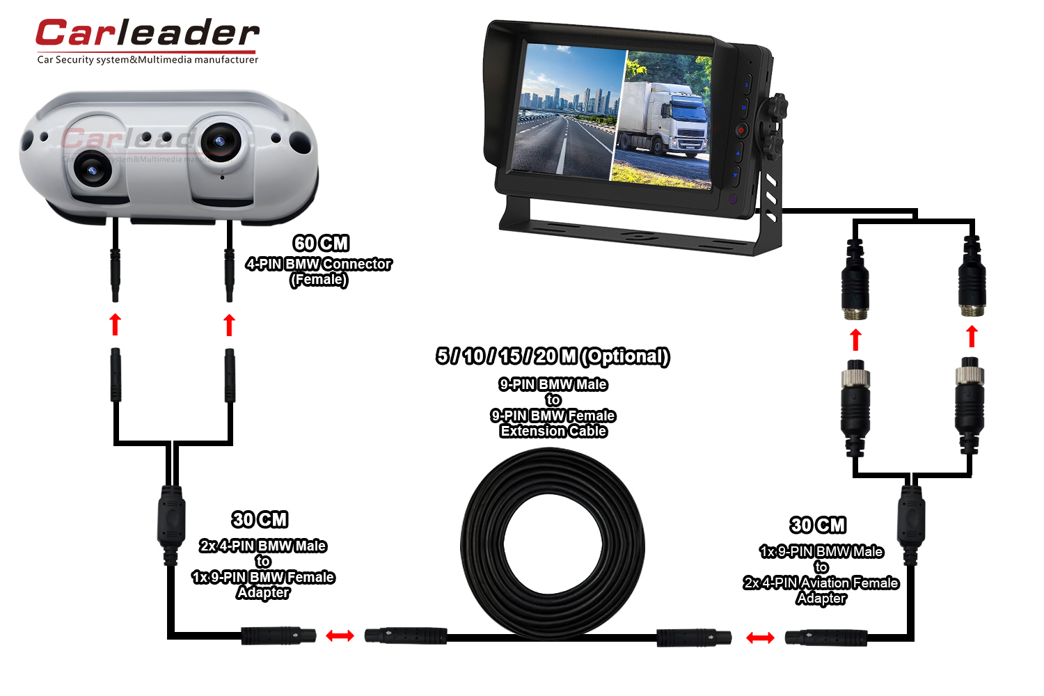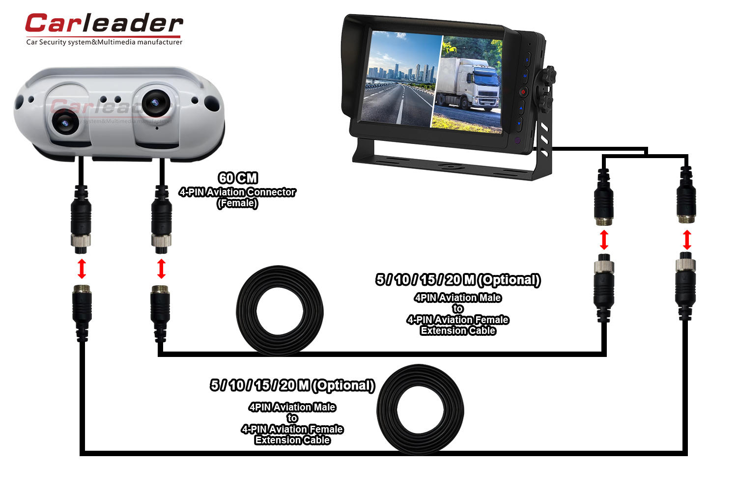 Mag-aalok ang Carleader ng dalawang magkaibang solusyon sa mga kable para sa AHD Starlight Dual Lens Heavy Duty Rear View Camera, upang magkasya sa iba't ibang pangangailangan ng mga kable: