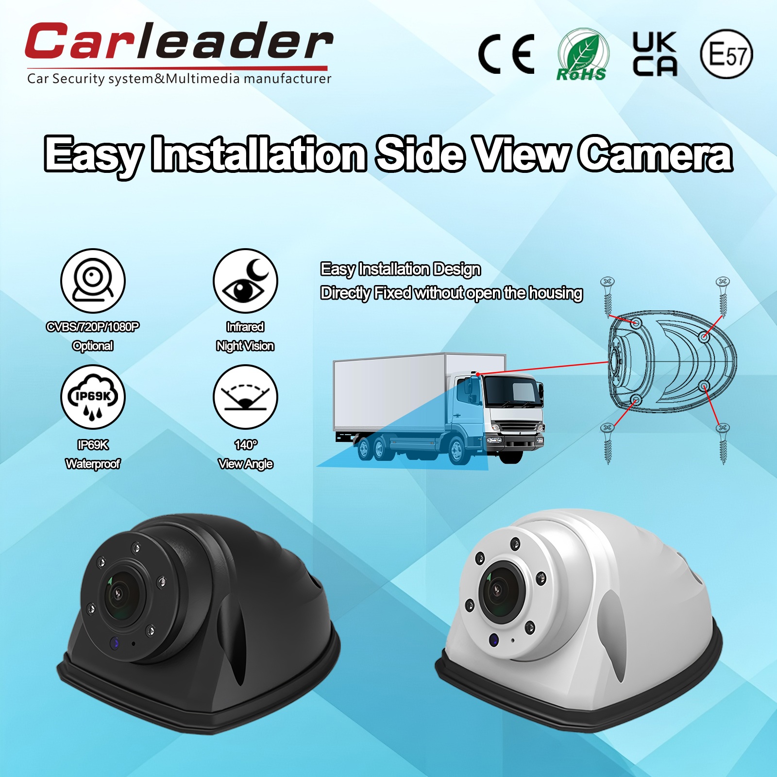 CarleaderMabilis na Pag-install ng AHD Heavy Duty Side View Camera Whiteay isang high-performance side view AHD camera na idinisenyo upang maghatid ng malinaw na visibility sa anumang malupit na kondisyon ng panahon. Pangunahing Idinisenyo para sa multifunctional at matibay na pagganap nito, ang compact camera system na ito ay angkop para sa mga komersyal na sasakyan, kagamitang pang-industriya, at mga aplikasyon ng seguridad kung saan kailangan ang malinaw na peripheral vision.