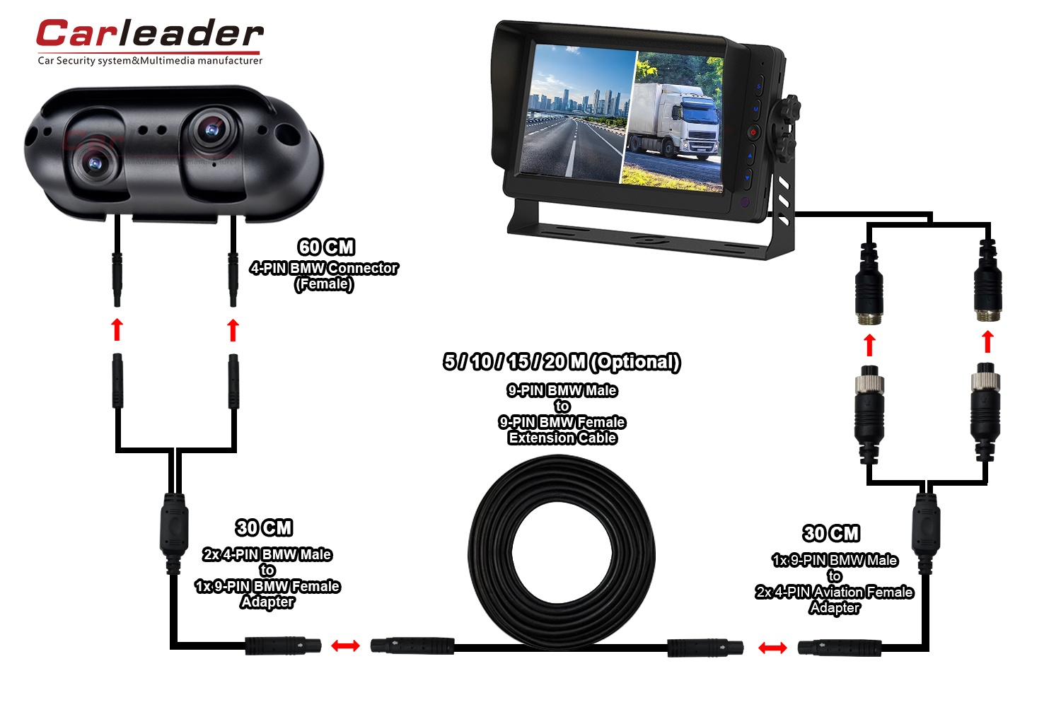 IP69KStarlight AHD Dual Lens Heavy Duty Reversing Camera, isang mahusay na kalidad na bagong dinisenyong pribadong tooling AHD camera, na isinama sa dalawahang lens sa isang camera, at ang anggulo ng lens na naaakma nang hiwalay, na nagbibigay-daan sa user na tingnan ang parehong malapit at malayong distansya sa parehong monitor.